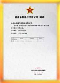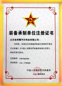 中国人民解放军总装备部对装备承制单位的审核极其规范和严格,北京金奔腾汽车科技有限公司接受资格审查期间,总装备部评审专家组根据G5713《装备承制单位资格审查要求》,对公司的质量管理体系运行状况、产品研发、生产采购、产品监控与质量检测等项目内容进行了全面系统的审核,经过初审、复审、终审,最后,评审专家组审定认为北京金奔腾汽车科技有限公司质量保证体系等综合能力,符合“通用车辆保障设备”——“汽车故障诊断仪”的研制、生产资格条件要求,且运行有效,准予授权注册。